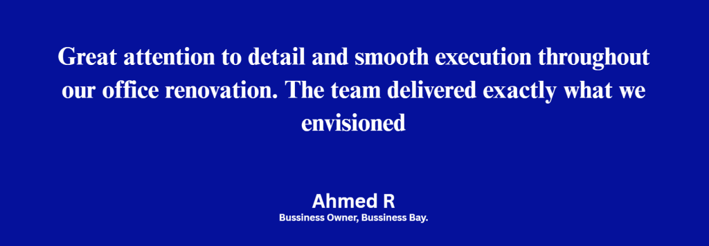 We renovate homes and luxury apartments across Dubai Marina, Burj Khalifa, Dubai Mall, Jumeirah Palm, and Jumeirah Emirates Tower. We have served in villas and flats in the neighborhoods, including Al Quoz, Damac Hills, Downtown, Arabian Ranches, Metro City, and Jumeirah Park Residence. You can see our community-friendly designs and layout in Spring Meadows, Al Furjan, Al Barsha Heights, Silicon Oasis, Hilton, Millennium Place Marina, and Dubai Village Circle.